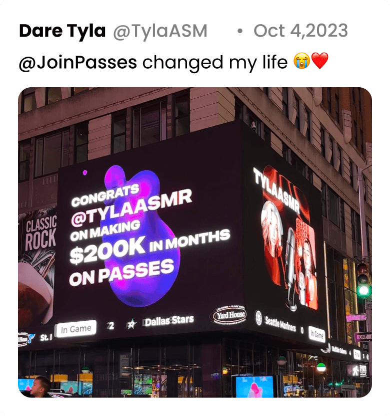 You can get up to $10,000 cash from creators you refer through our referral program. If you're an Agency, email us at help@passes.com.